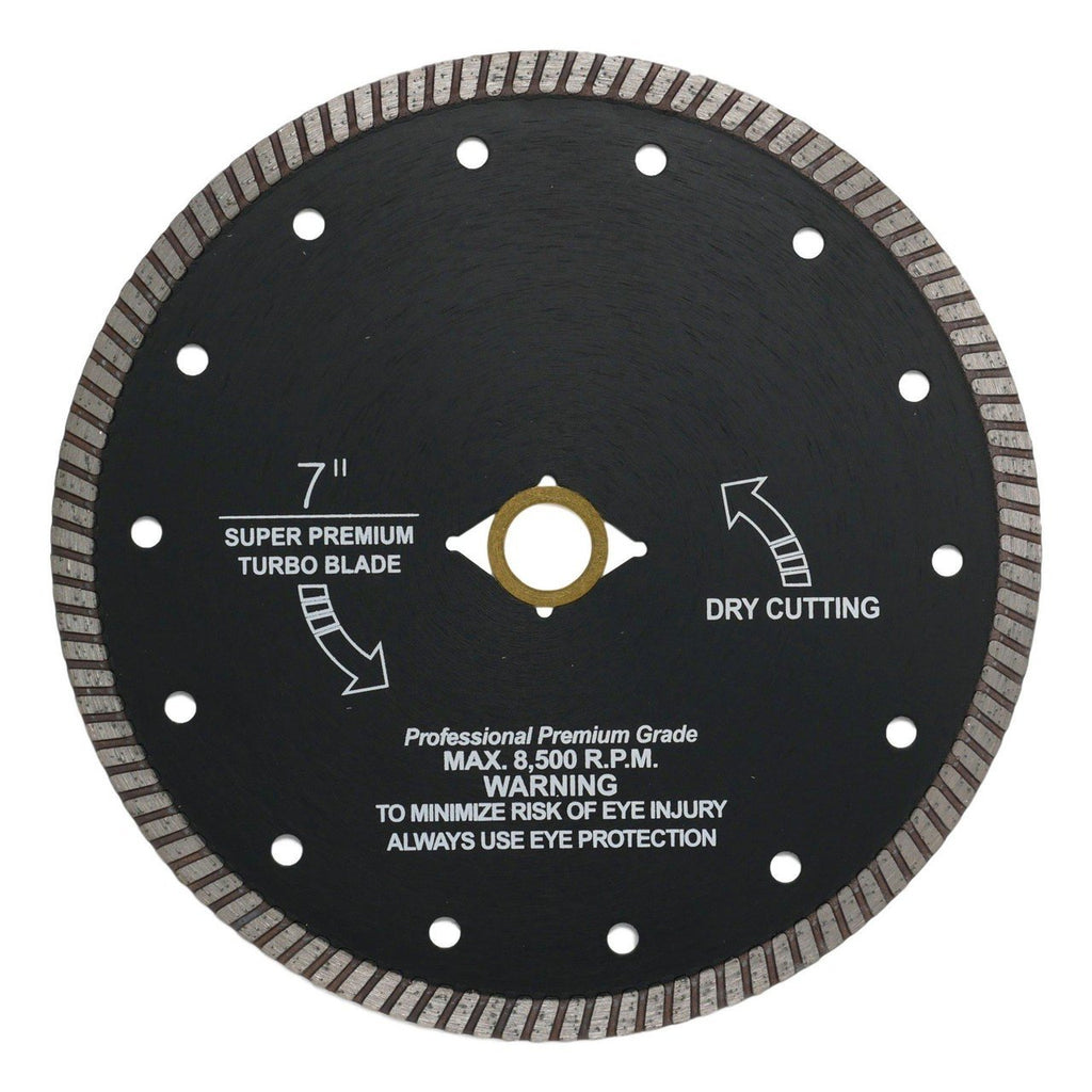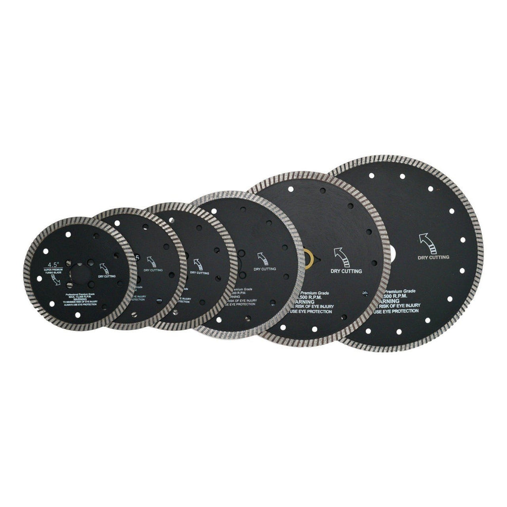 The Atlas Turbo Blades are formulated with a unique softer bond that enables exceptionally rapid cutting. They are specifically designed for use on granite, engineered stone, and various natural stones. The Atlas Turbo Blades feature cooling holes in the steel core and a narrow-slot turbo rim, which contribute to a swift and clean cut.